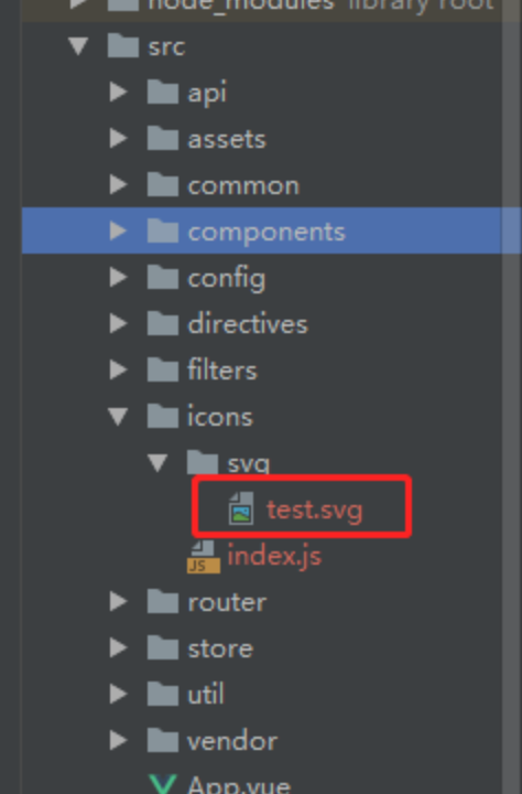 4.在src下新建icons文件夹,及icons文件夹下svg文件夹、index.js文件, index.js文件内容如下